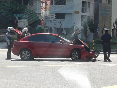 Nasty accident near Buona Vista this afternoon. I think the driver tried to make an illegal U-turn but ended up running into a bus. No prize for guessing who came out of this worse off.